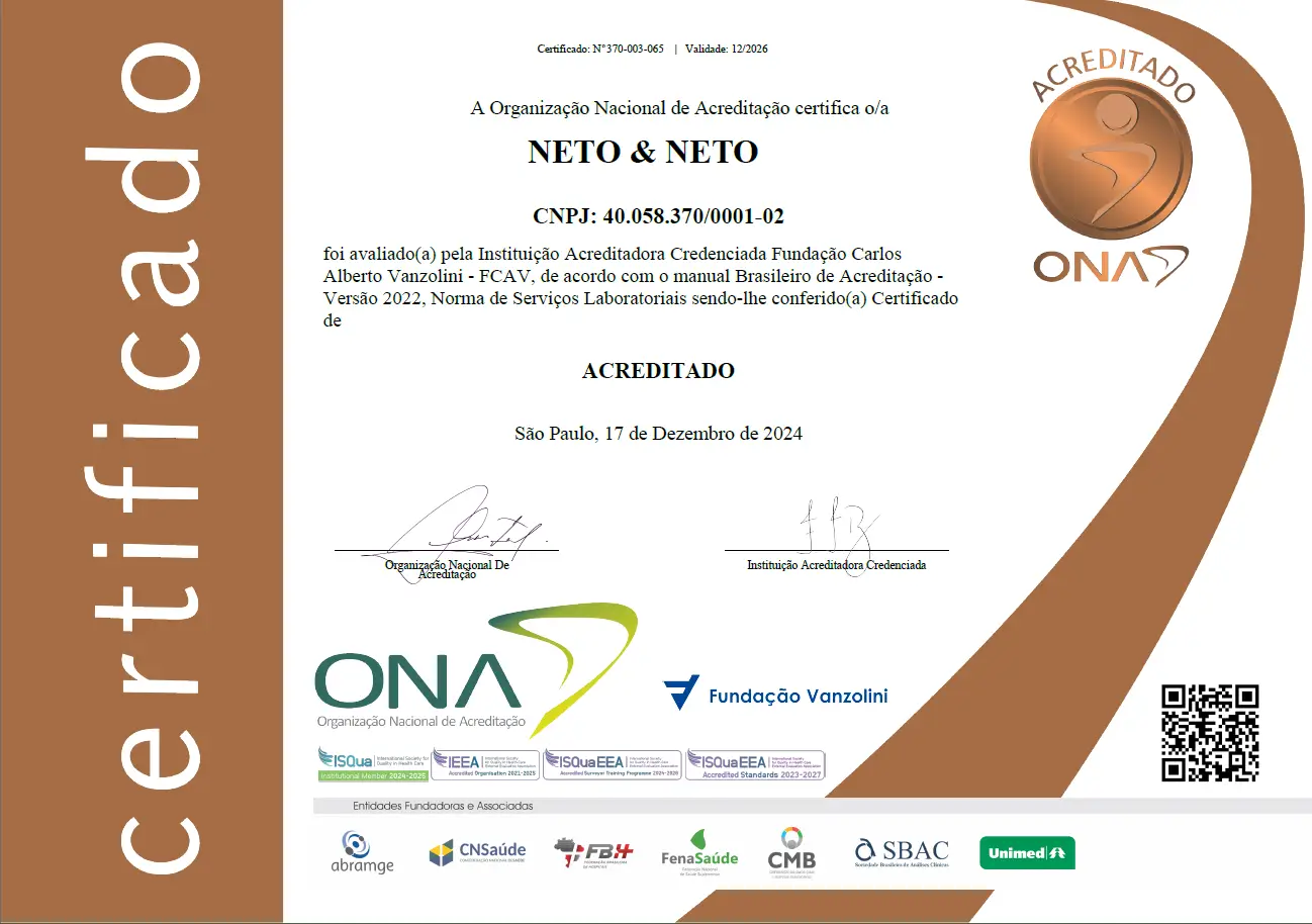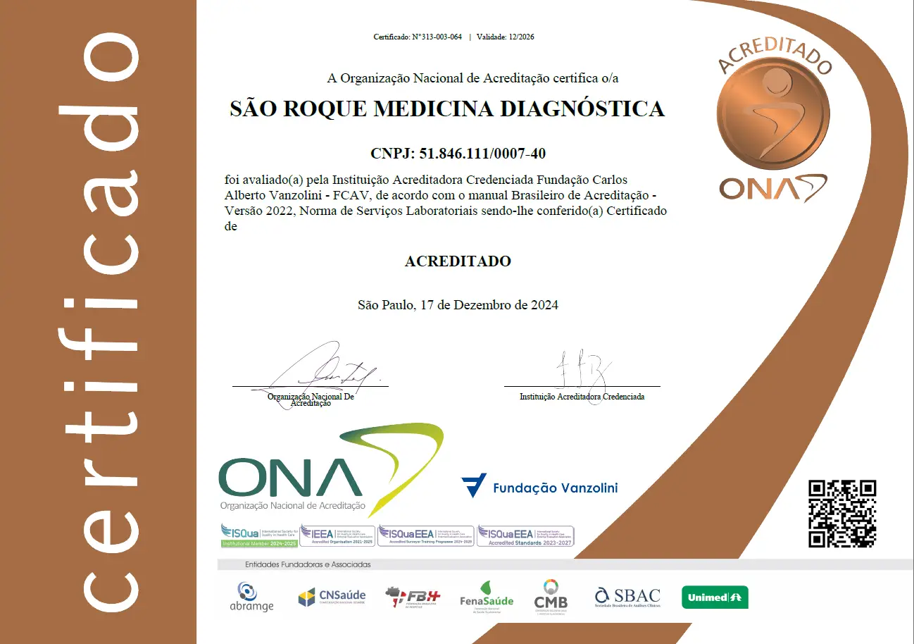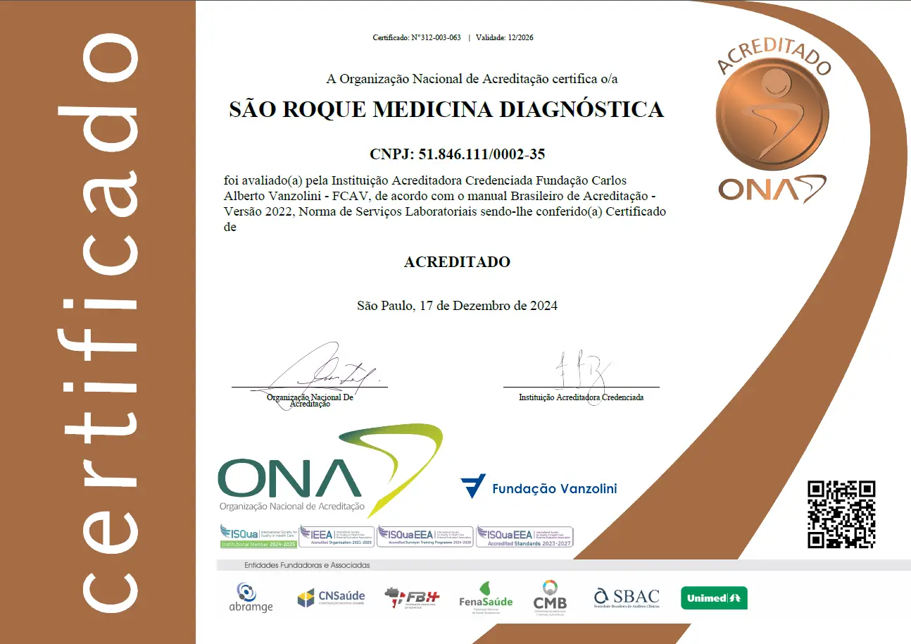 O Laboratório São Roque se orgulha de possuir Acreditação pela ONA (Organização Nacional de Acreditação), que é responsável pelo desenvolvimento e gestão dos padrões brasileiros de qualidade e segurança em saúde, Certificação de LABORATÓRIO EXCELENTE do PNCQ (Programa Nacional de Controle de Qualidade) e de Anatomia Patológica PICQ (Programa de Incentivo ao Controle de Qualidade).